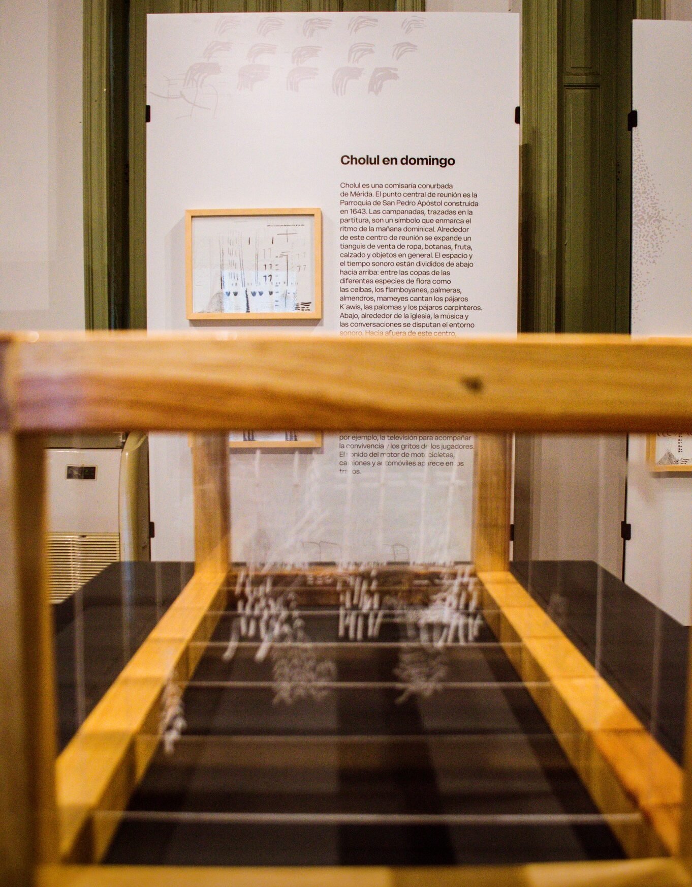 Cholul es una comisaria conurbada de Mérida. Las campanadas, trazadas en la partitura, son un símbolo que enmarca el ritmo de la mañana dominical. El espacio y el tiempo sonoro están divididos de abajo hacia arriba: entre las copas de las diferentes floras, pajaros que cantan, así como la música y las conversaciones que disputan el entorno sonoro.